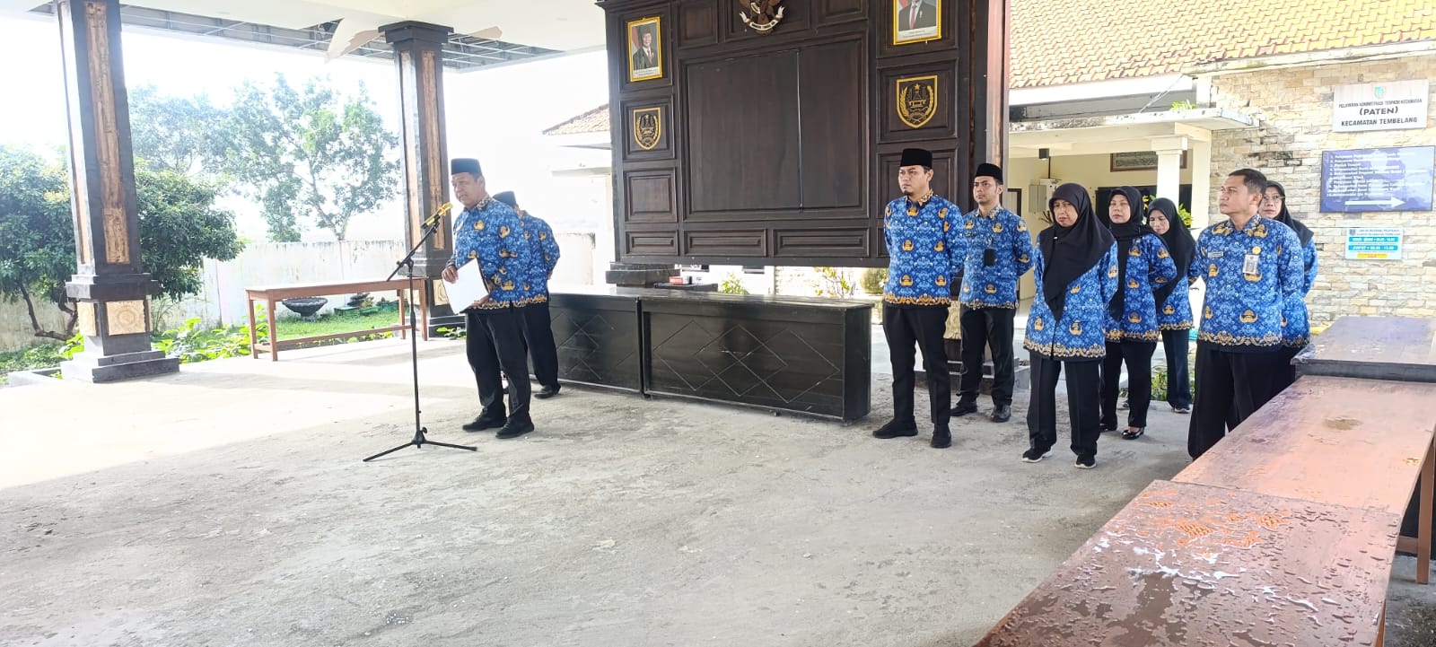 Pada hari Selasa, 17 Maret 2026, Kantor Kecamatan Tembelang menyelenggarakan kegiatan Apel Kerja Korpri yang bertempat di Pendopo Kecamatan. Kegiatan ini berlangsung dengan khidmat dan diikuti oleh jajaran aparatur sipil negara (ASN) serta perwakilan dari beberapa Organisasi Perangkat Daerah (OPD) di lingkup Kecamatan Tembelang.