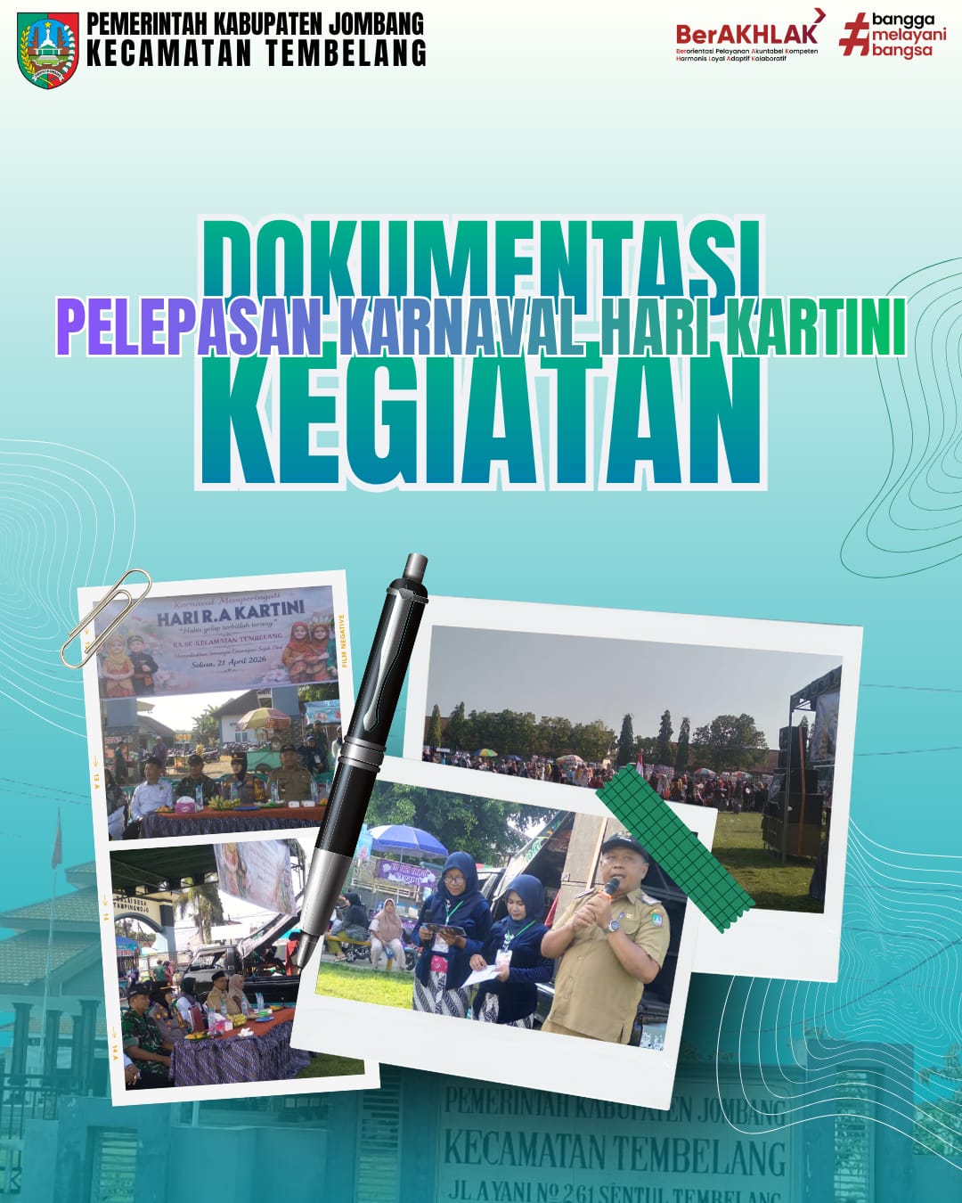 Kegiatan karnaval dalam rangka memperingati Hari Kartini tahun 2026 diselenggarakan dengan tertib dan meriah di Lapangan Tampingmojo pada hari Selasa, 21 April 2026. Kegiatan ini diikuti oleh peserta dari seluruh Raudhatul Athfal (RA) se-Kecamatan Tembelang.