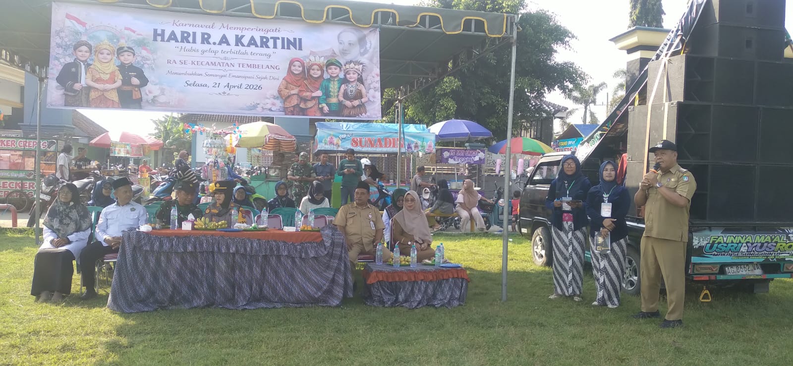 Acara pembukaan dan pemberangkatan karnaval dilakukan secara resmi oleh Camat Tembelang, Bapak A. Fahruddin Fauzi, SE., MM yang dalam kesempatan tersebut hadir sebagai tamu. Kehadiran beliau memberikan dukungan dan semangat bagi seluruh peserta yang mengikuti kegiatan.